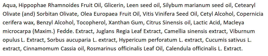В составе, как и в других продуктах Levrana обилие масел и экстрактов: